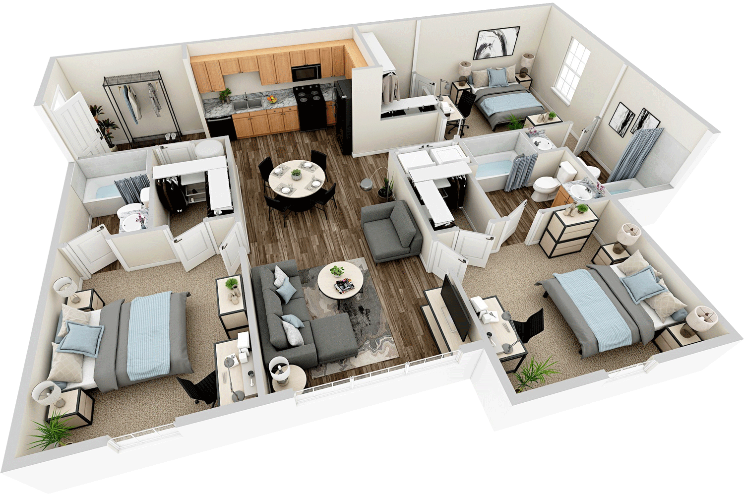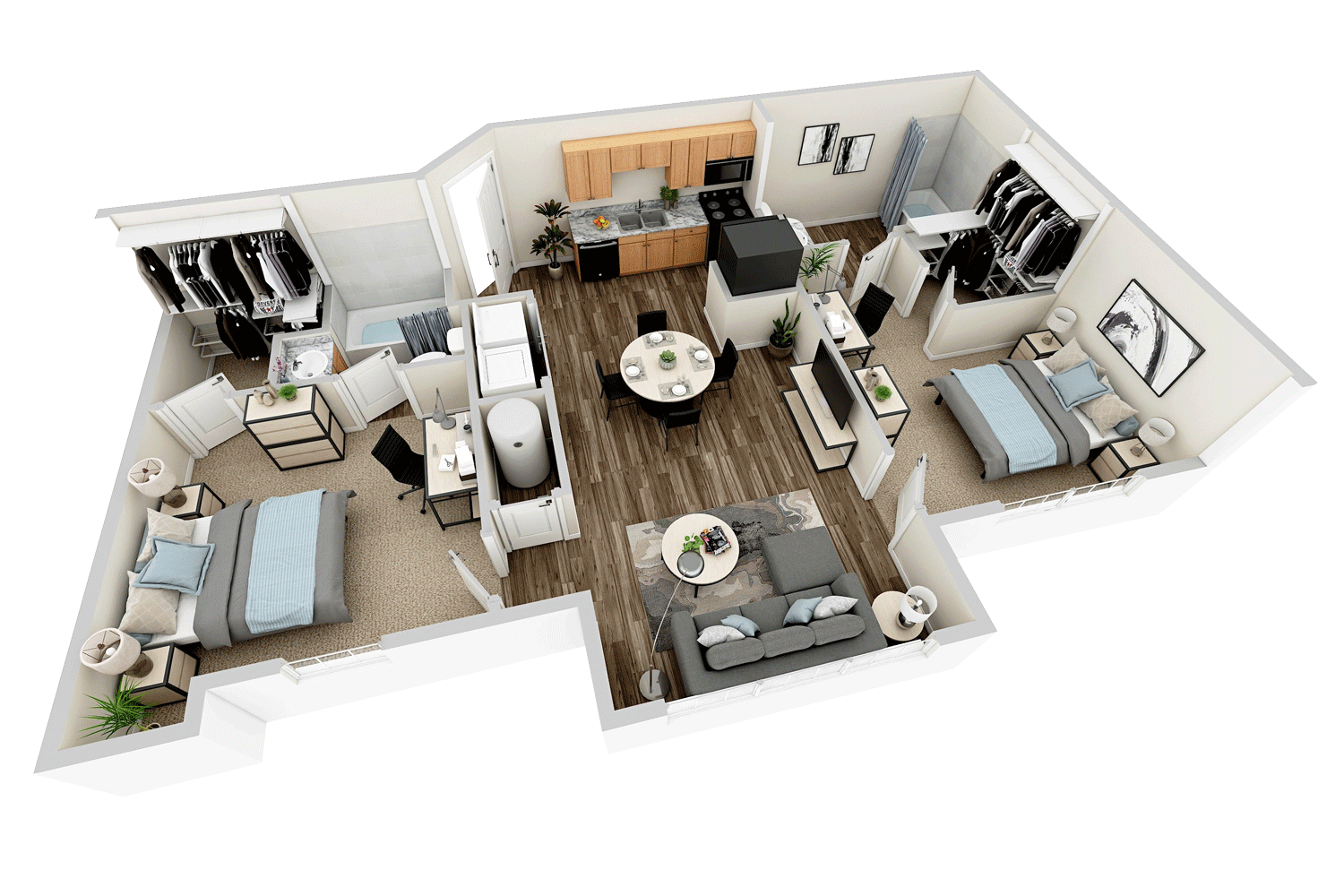 Luxury 2- and 3-Bedroom Student Apartments Featuring Private Bathroom Suites and Spacious Floor Plans